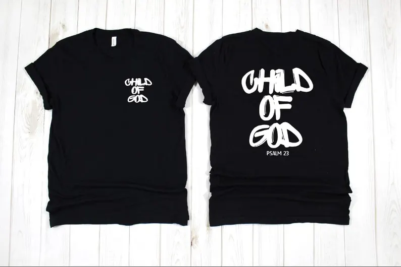 Declare your faith boldly with this Unisex Christian T Shirt, featuring the message “Child of God” with scripture from Psalm 23. The minimalist yet powerful front-and-back design makes this shirt a strong expression of Christian identity and belief.